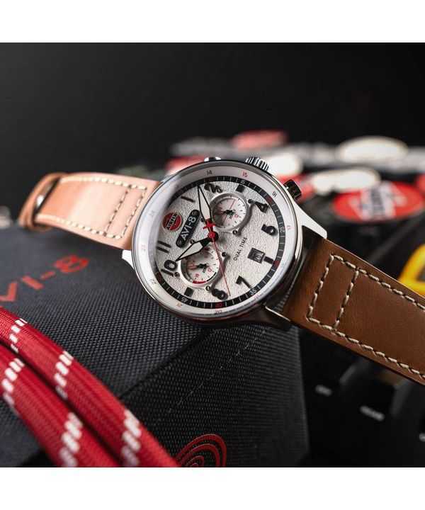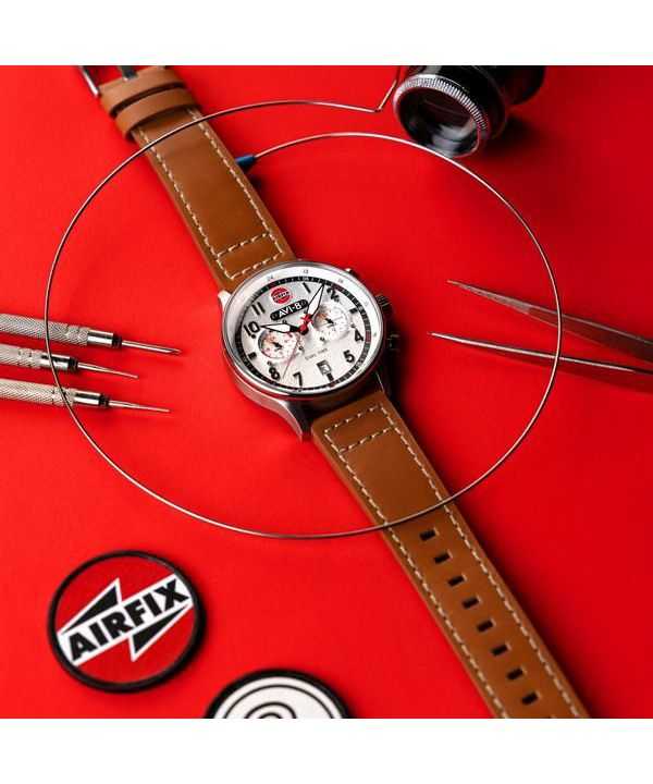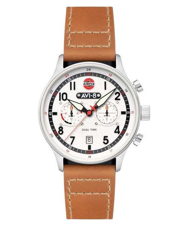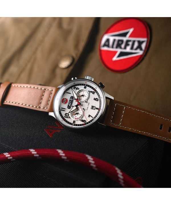 AVI-8 Hawker Hurricane Carey Dual Time Airfix Edition Silver Leather Strap White Dial Quartz AV-4088-06 Men’s Watch