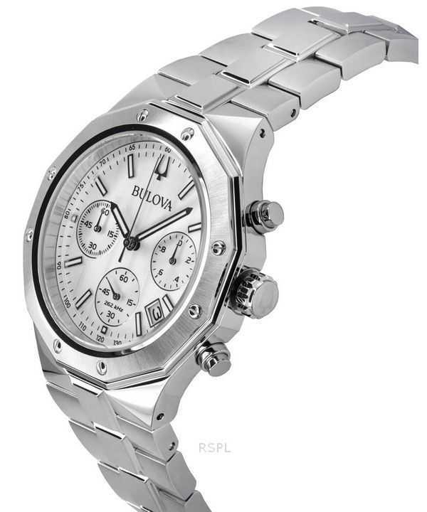Bulova Classic Precisionist Chronograph Stainless Steel Silver Dial Quartz 96B408 100M Men’s Watch