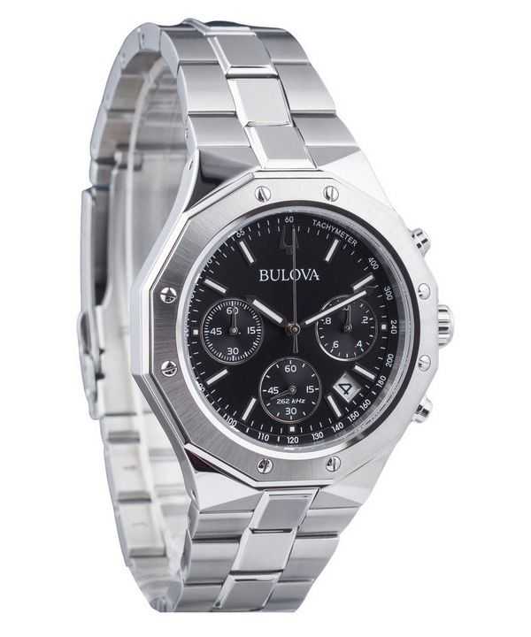 Bulova Classic Precisionist Octagon Chronograph Stainless Steel Black Dial Quartz 96B410 100M Men’s Watch