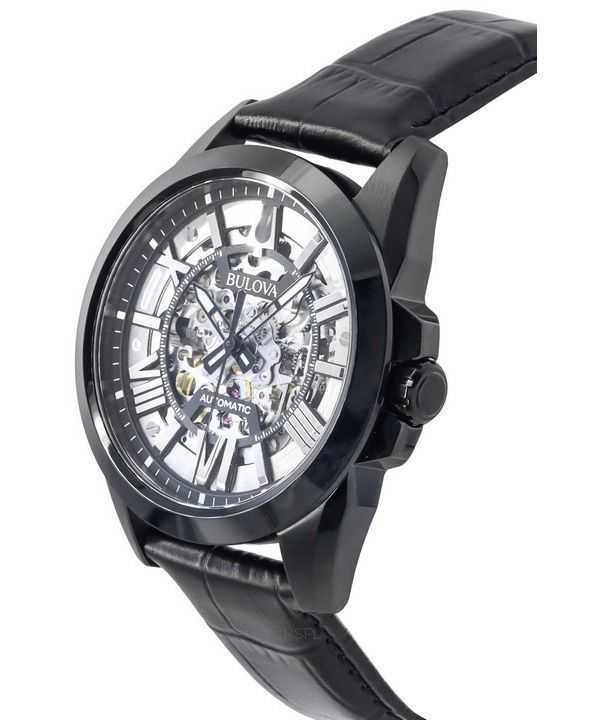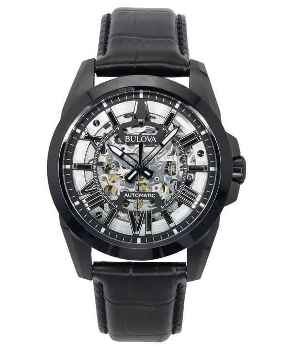 Bulova Classic Sutton Leather Strap Silver Skeleton Dial Automatic 98A304 100M Men’s Watch