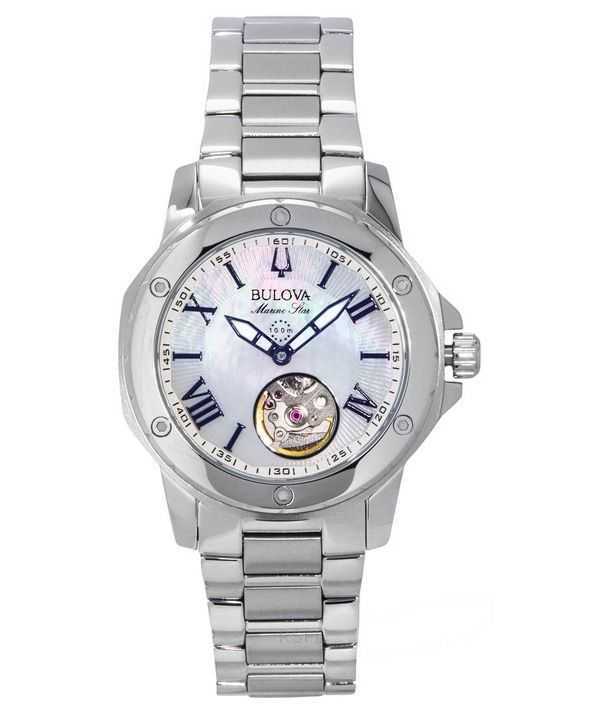 Bulova Marine Star Stainless Steel Mother Of Pearl Dial Automatic 96L326 100M Women’s Watch