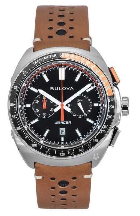 Be the first to review “Bulova Racer Chronograph Leather Strap Black Dial Quartz 98B427 100M Mens Watch”