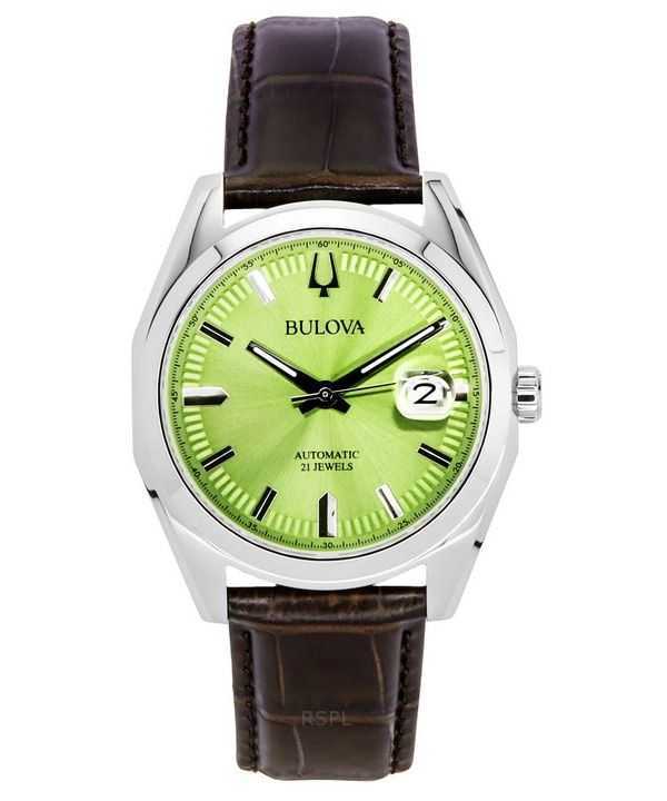 Bulova Surveyor Leather Strap Green Dial Automatic 96B427 Men’s Watch