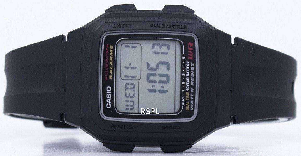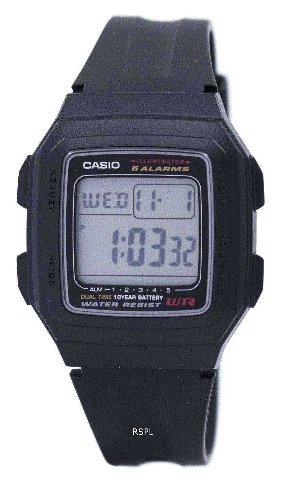 Casio Digital 5 Alarms Dual Time Illuminator F-201WA-1ADF F-201WA-1A Mens Watch