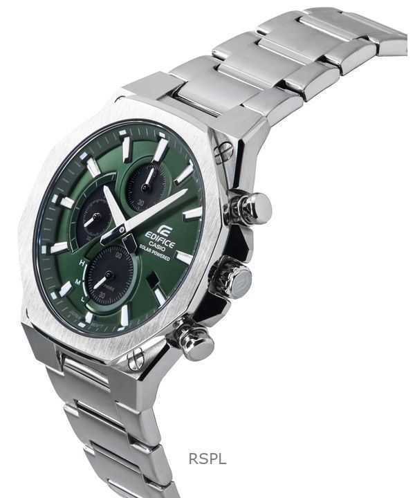 Casio Edifice Slim Line Analog Chronograph Stainless Steel Green Dial Solar EFS-S570D-3A EFSS570D-3 100M Men’s Watch