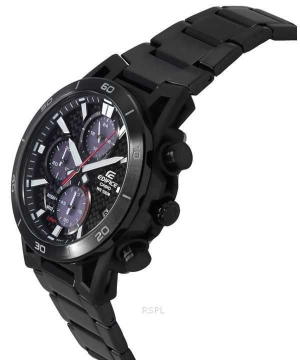 Casio Edifice Sospensione Analog Chronograph Black Ion Stainless Steel Black Dial Solar EQS-960DC-1AV EQS960DC-1 100M Men’s Watch