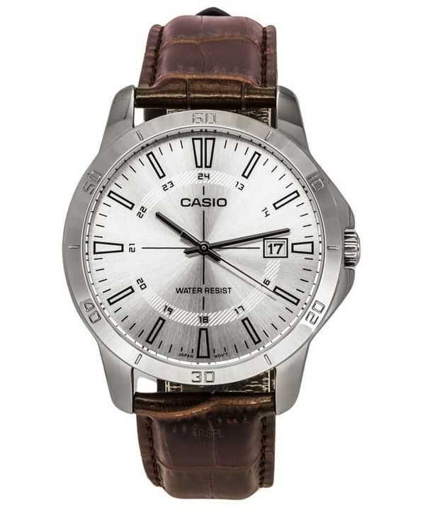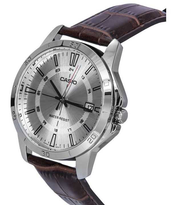 Casio Standard Analog Brown Leather Strap Silver Dial Quartz MTP-V004L-7C MTPV004L-7C Men’s Watch