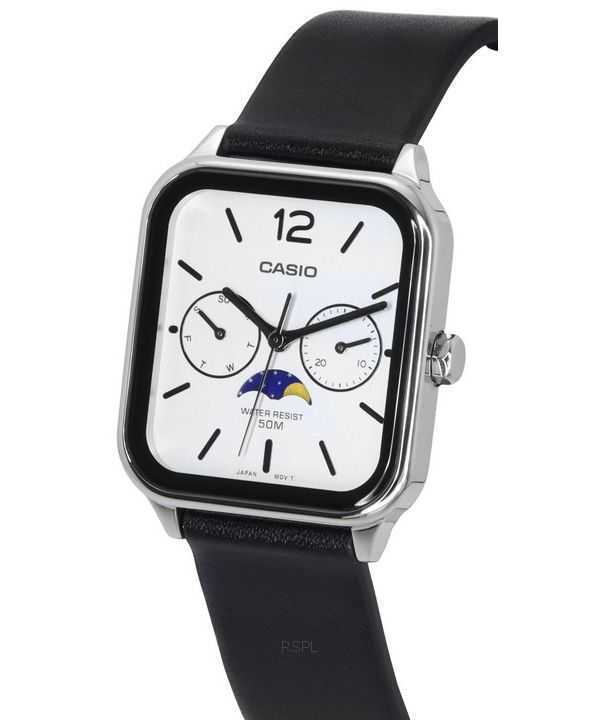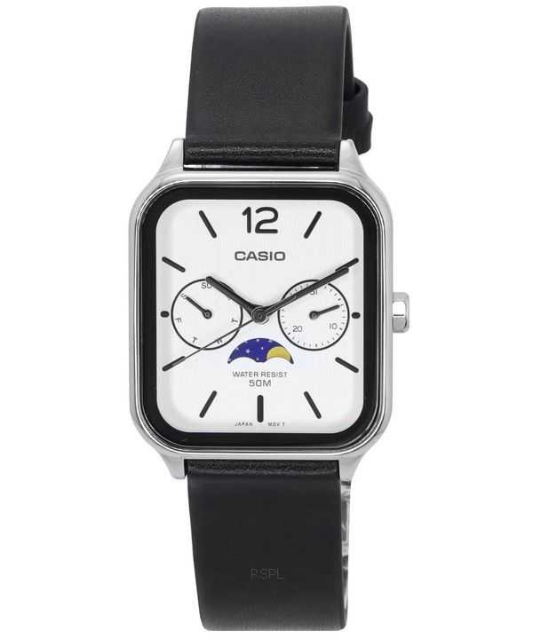 Casio Standard Analog Moon Phase Leather Strap White Dial Quartz MTP-M305L-7A MTPM305L-7 Men’s Watch