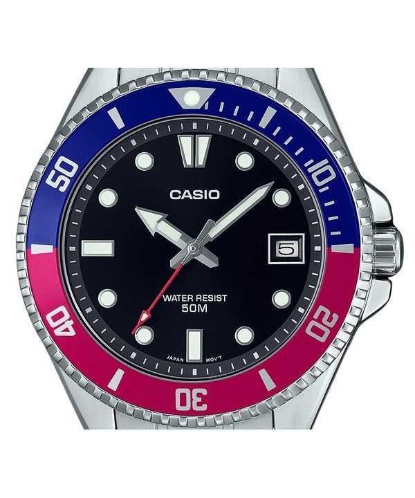 Casio Standard Analog Pepsi Bezel Stainless Steel Black Dial Quartz MDV-10D-1A3 MDV10D-1A3 Men’s Watch