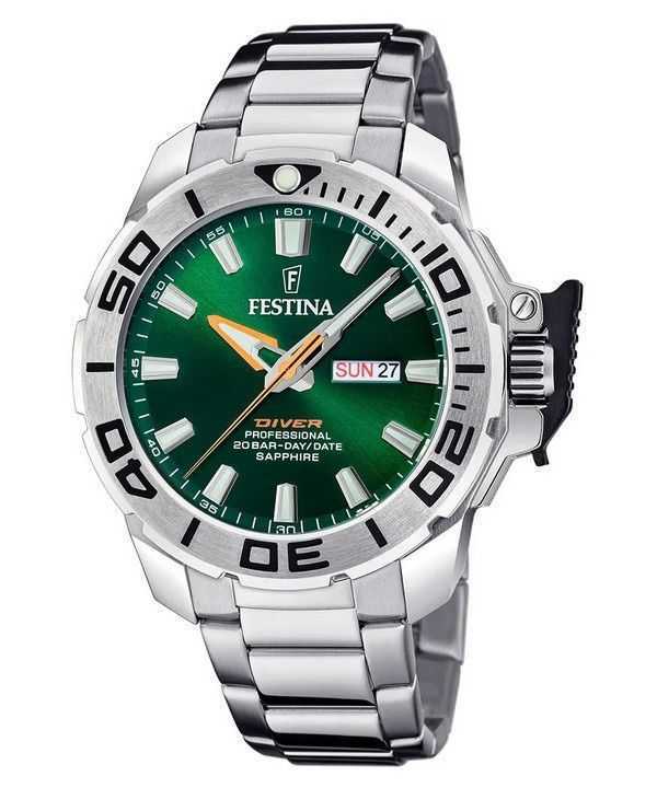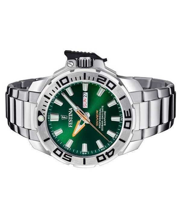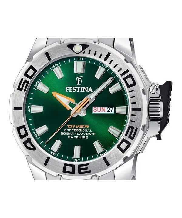 Festina Diver Stainless Steel Green Dial Quartz F20665-2 F206652 200M Men’s Watch With Extra Strap