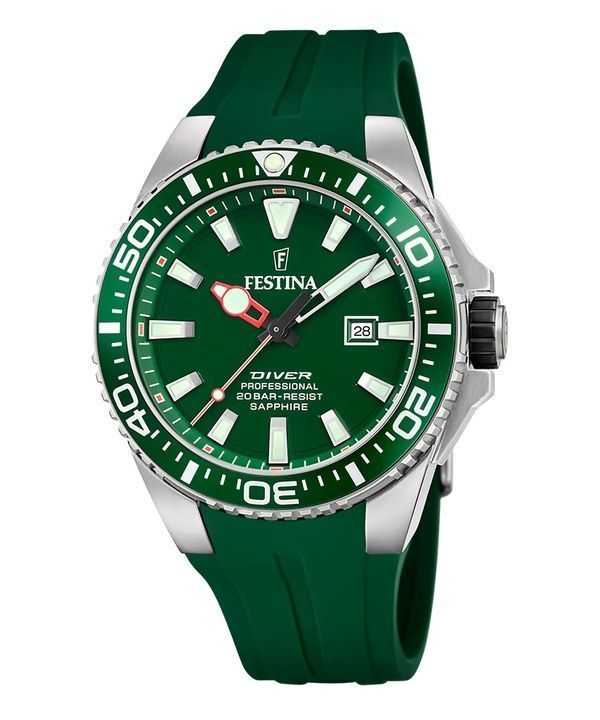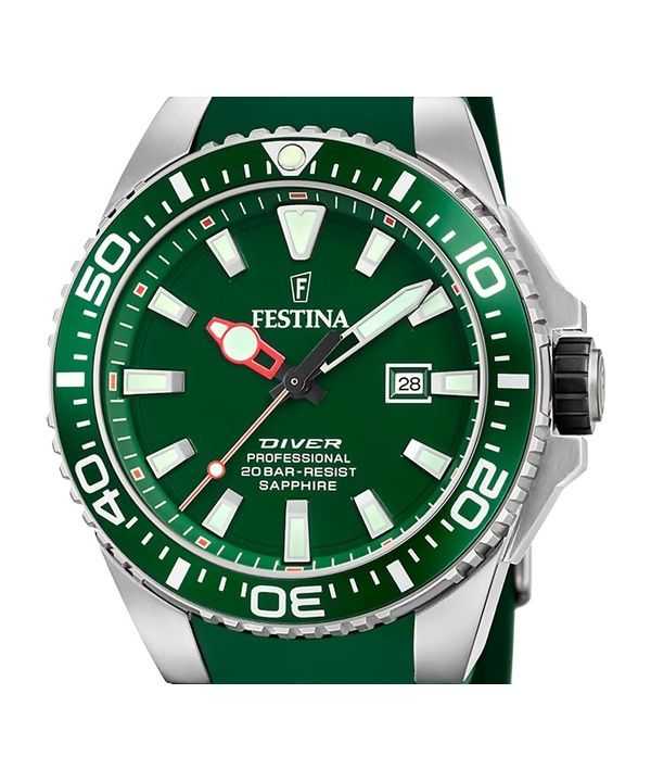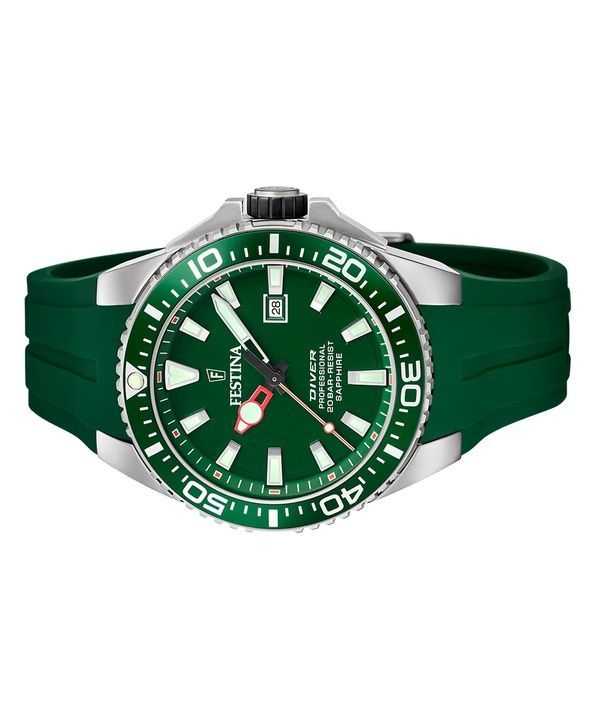 Festina The Originals Rubber Strap Green Dial Quartz Diver’s F20664-2 200M Men’s Watch