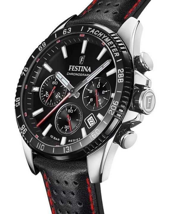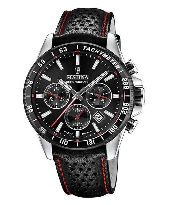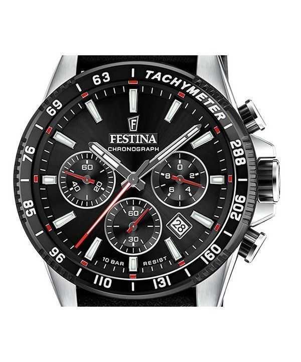 Festina Timeless Chronograph Leather Strap Black Dial Quartz F20561-4 100M Men’s Watch