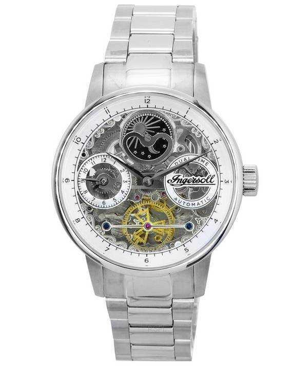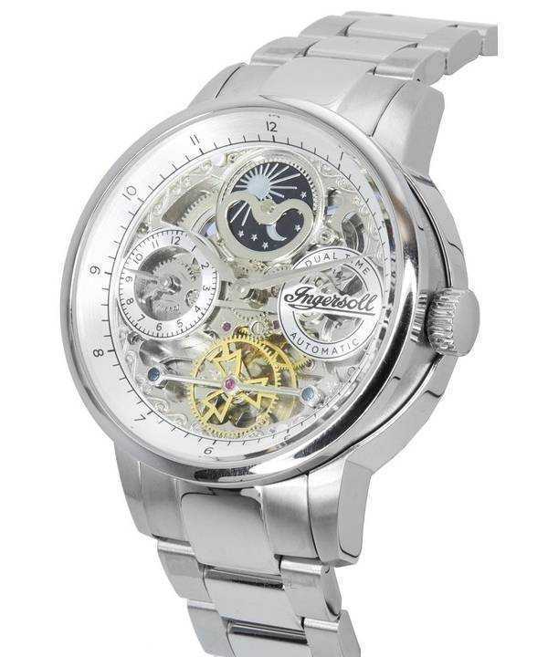 Ingersoll The Jazz Sun and Moon Phase Stainless Steel Skeleton Silver Dial Automatic I07703 Mens Watch