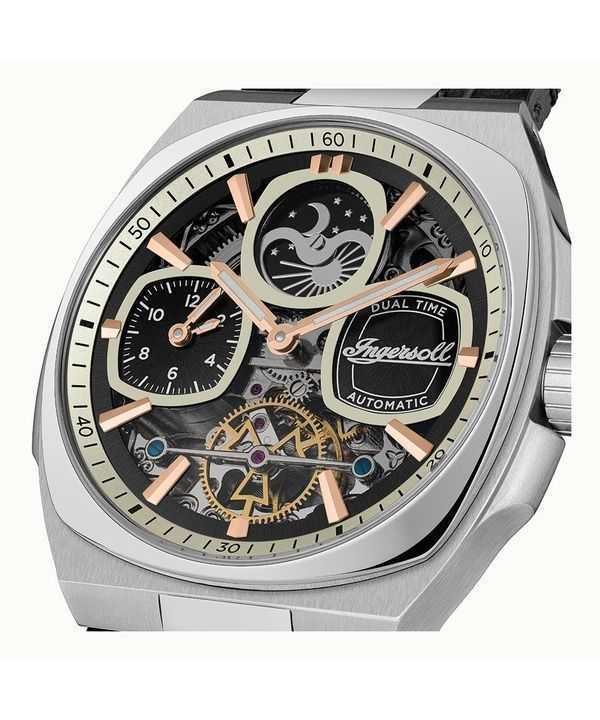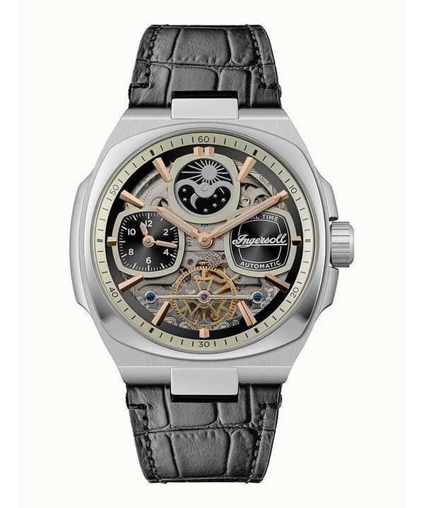 Ingersoll The Spirit Moon Phase Leather Strap Black Skeleton Dial Automatic I15801 Men’s Watch
