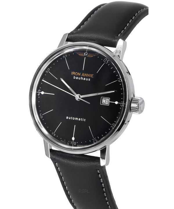Iron Annie Bauhaus Leather Strap Black Dial Automatic 50502 Mens Watch