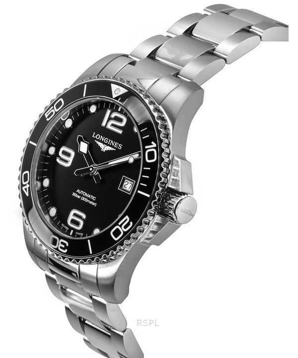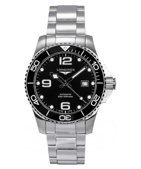 Longines Hydroconquest Stainless Steel Sunray Black Dial Automatic Diver’s L3.782.4.56.6 300M Men’s Watch