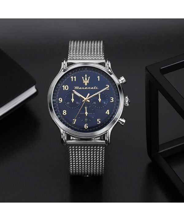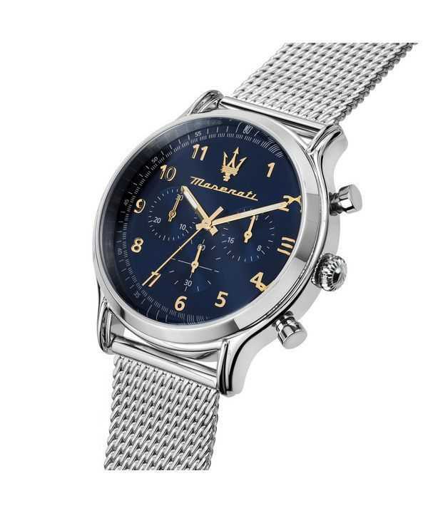 Maserati Epoca Limited Edition Chronograph Stainless Steel Mesh Blue Dial Quartz R8873618022 100M Men’s Watch