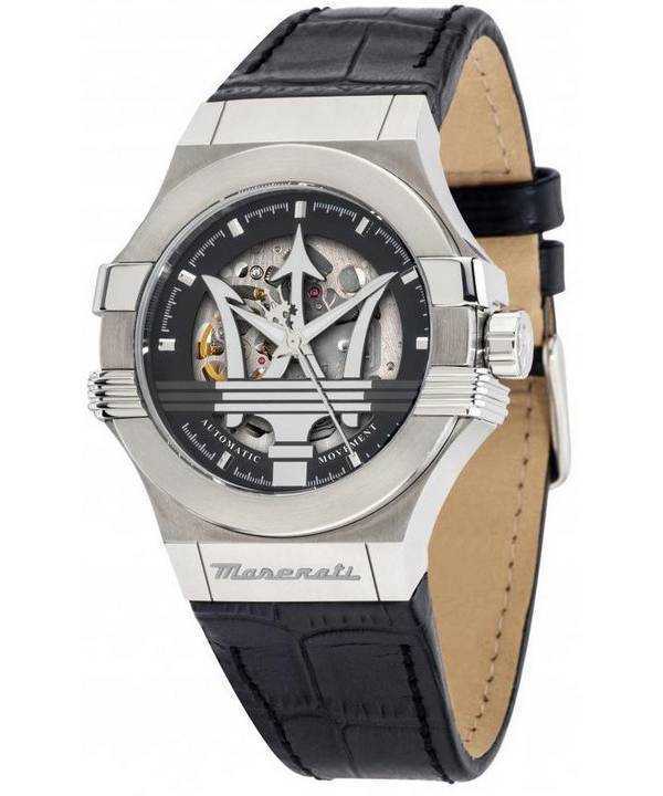 Maserati Potenza Leather Strap Skeleton Black Dial Automatic R8821108038 100M Men’s Watch