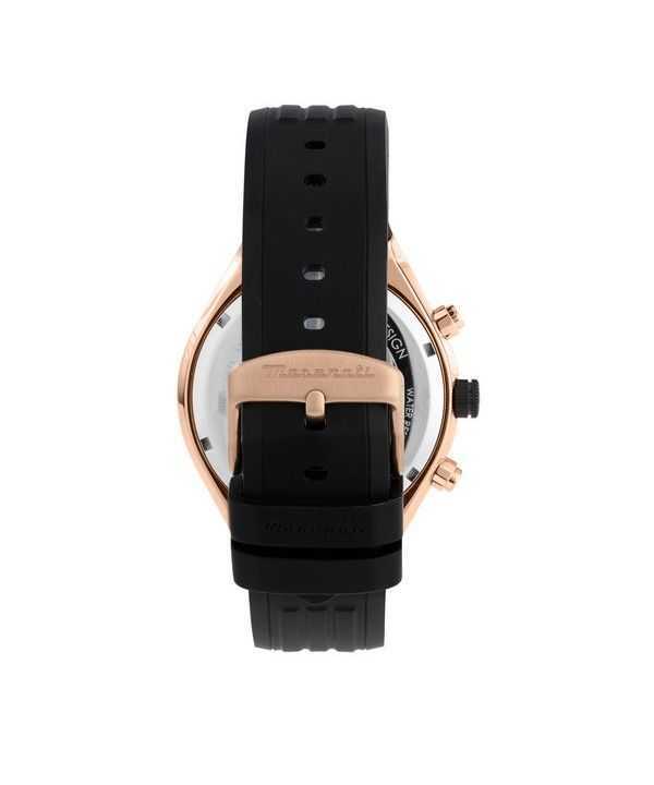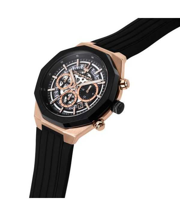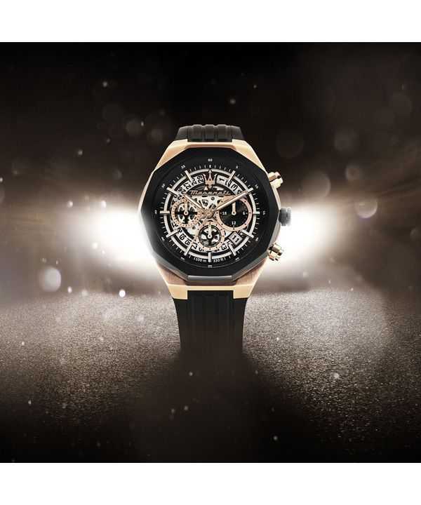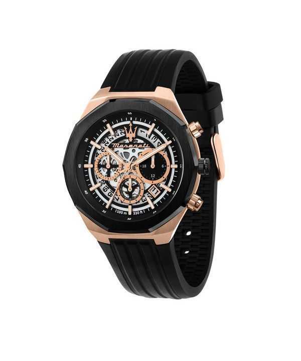 Maserati Stile Chronograph Rubber Strap Black Skeleton Dial Quartz R8871642003 100M Men’s Watch