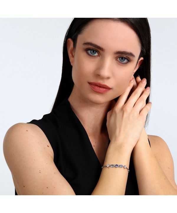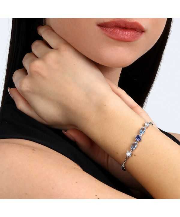 | Features | Light Blue Crystals, Stainless Steel, Rhodium Plating Bracelet, Lobster Clasp |