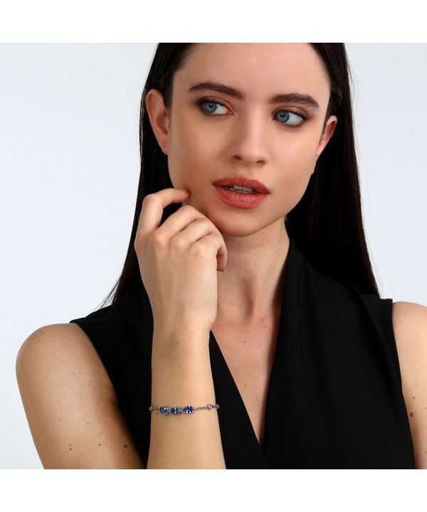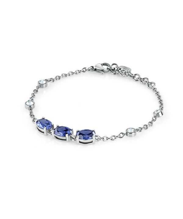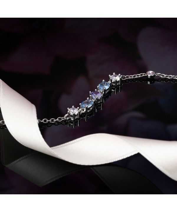 Features Light Blue Crystals, Stainless Steel, Rhodium Plating Bracelet, Lobster Clasp