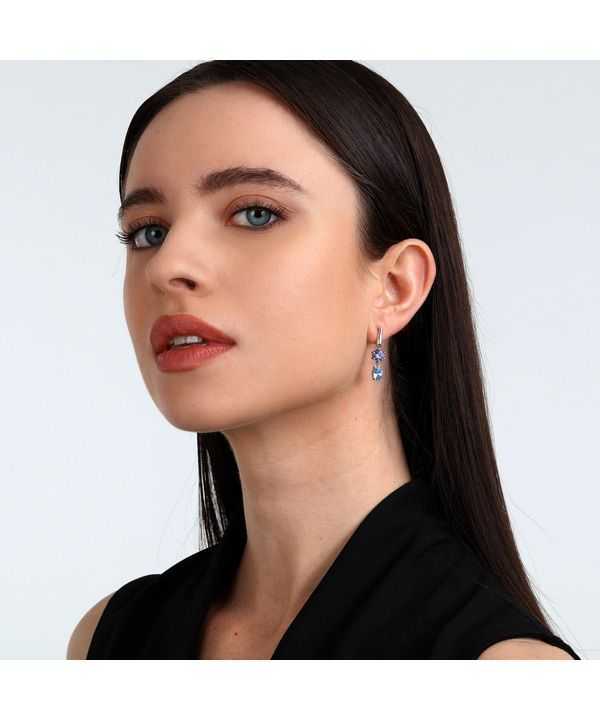Features Zircons, Stainless Steel, Rhodium Plating Earrings, Push Back Clasp
