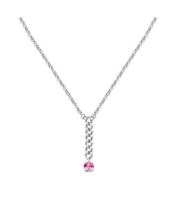 Features Fucsia Crystals, Stainless Steel Necklace, Lobster Clasp
