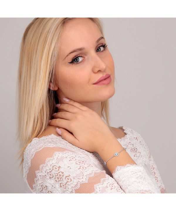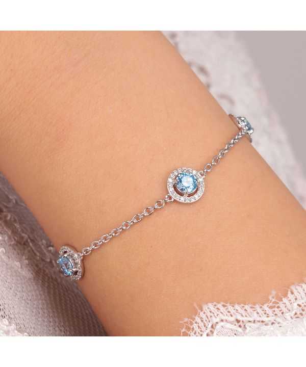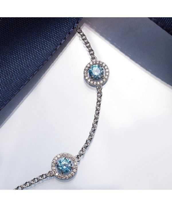 Features Aquamarine, 925 Silver Charms Bracelet, Lobster Clasp
