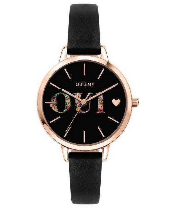Oui & Me Fleurette Black Dial Leather Strap Quartz ME010079 Women’s Watch