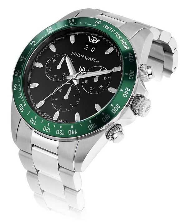 Philip Watch Caribe Sport Chronograph Stainless Steel Black Sunray Dial Quartz R8273607010 100M Men’s Watch