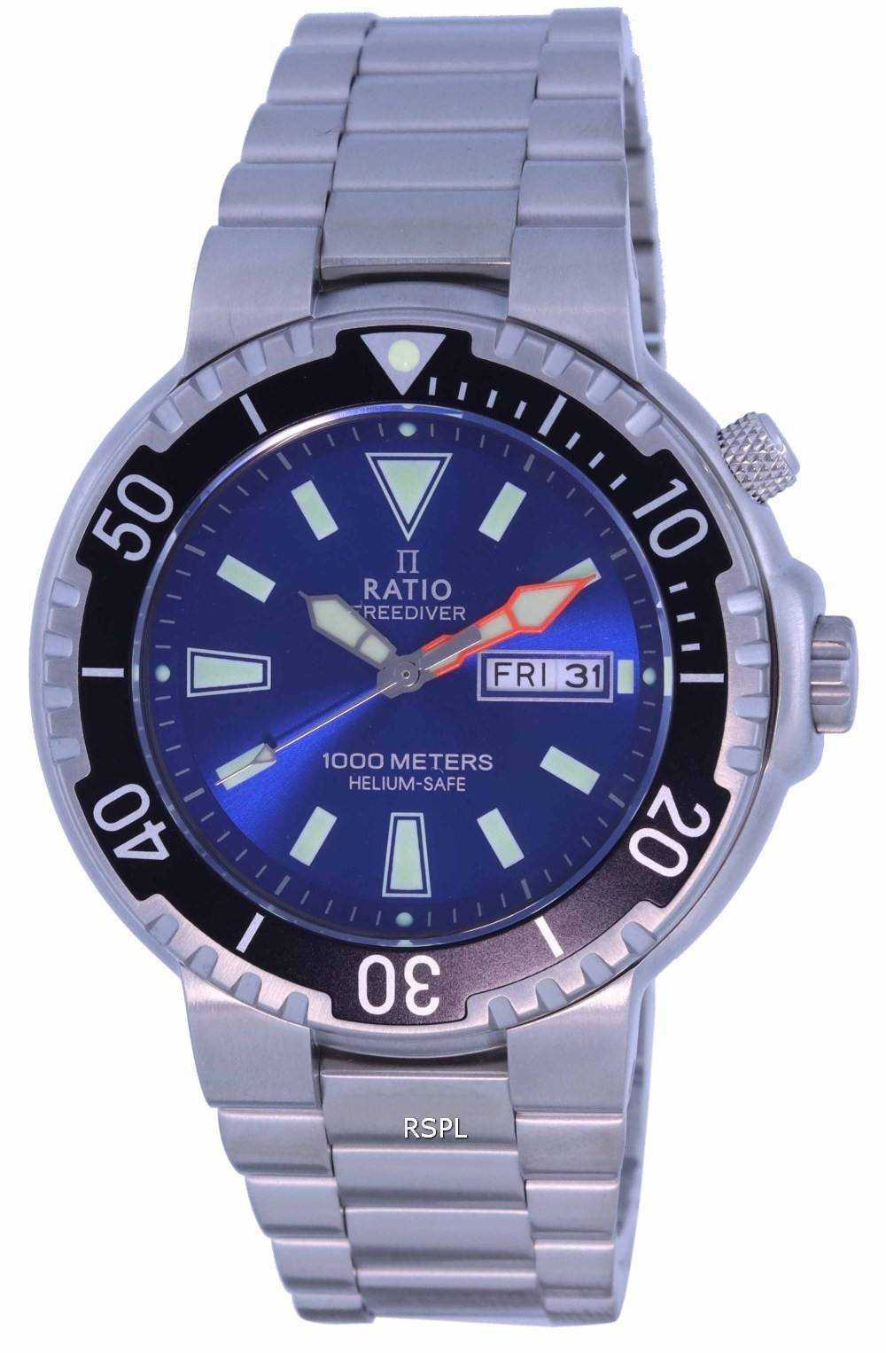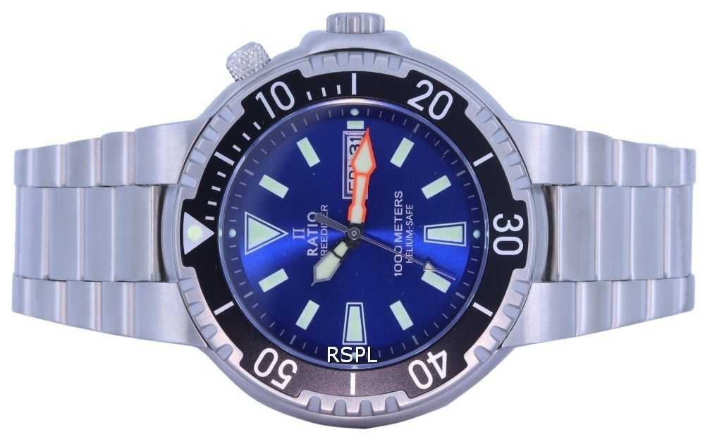 Ratio FreeDiver Blue Dial Stainless Steel Quartz 1050HA93-12V-BLU 1000M Men’s Watch Inspired by classical themes, created for the city-dwelling, deep-sea professional. You can also not be a marine professional and still wear it everywhere for its good looks. A great watch for the money, it is designed and produced by a Freediver himself! Rather than emulating upon popular models, the watch has been built to deliver a novel wearing experience – not just for its customers but also for those who build them.