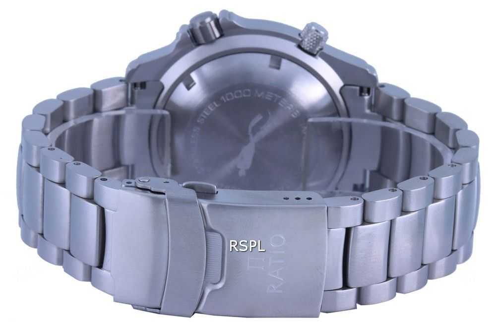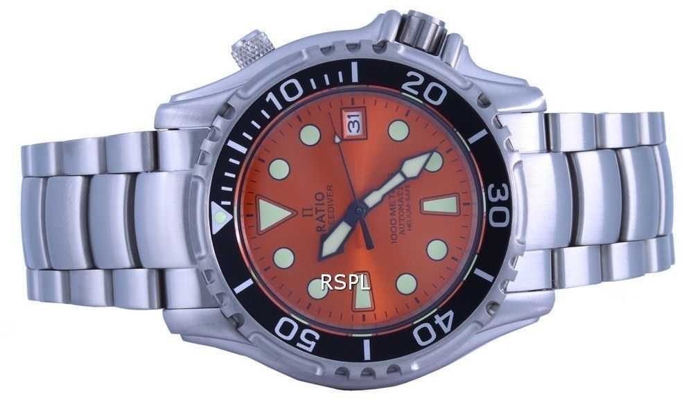 Ratio FreeDiver Helium Safe 1000M Orange Dial Stainless Steel Automatic 1066KE26-33VA-ORG Men’s Watch Professional as well as recreational, the Ratio FreeDiver Helium Safe 1000M can be used both ways. Built specifically for saturation environments deep down under as much as for skin/free diving just a few feet below the surface, the Ratio FreeDiver Helium Safe 1000M Orange Dial Stainless Steel Automatic shares the best traits of the most famous and innovative diver watches.