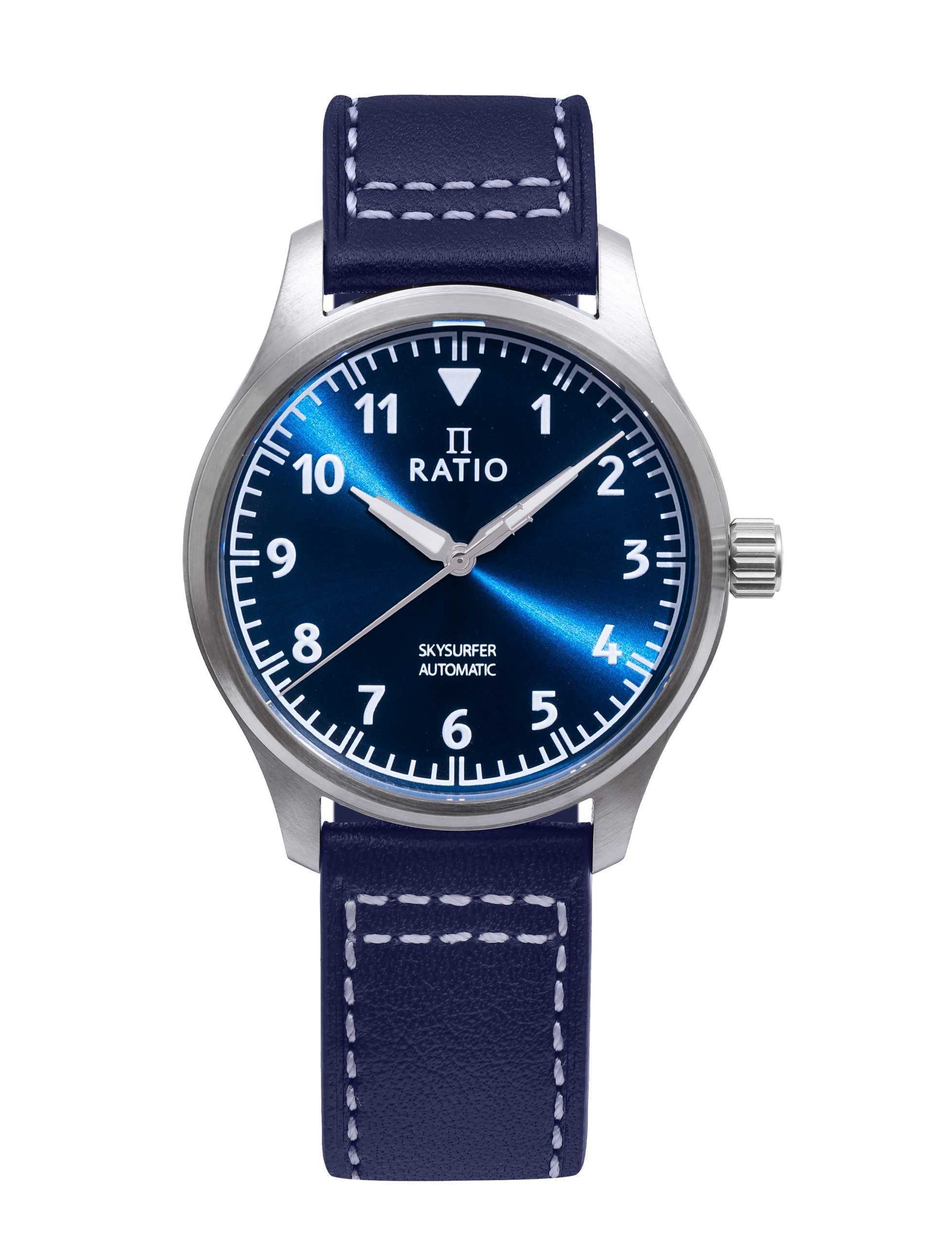 Ratio Skysurfer Pilot Blue Sunray Dial Leather Automatic RTS302 200M Men’s Watch
