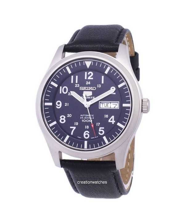 Refurbished Seiko 5 Sports Leather Strap Blue Dial Automatic SNZG11K1-var-LS10 100M Men’s Watch