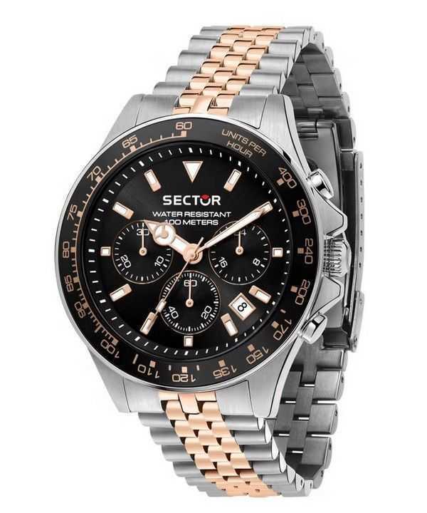 Sector 230 Chronograph Two Tone Stainless Steel Black Dial Quartz R3273661031 100M Mens Watch