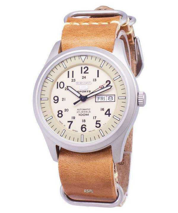 Seiko 5 Sports SNZG07J1-var-LS18 Military Japan Made Brown Leather Strap Men’s Watch