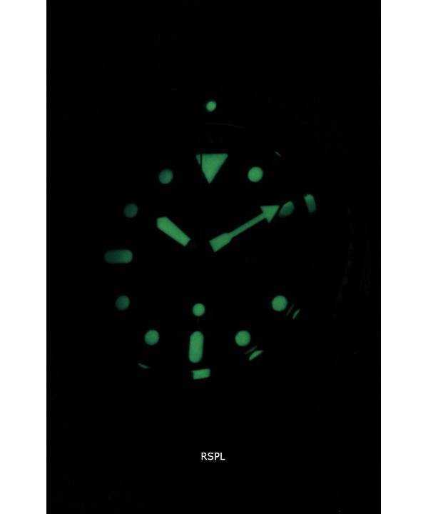 The ‘Pepsi’ colour combo (blue & red) is a hot favourite among people who want a tool watch with an urban appeal. This one is the big brother of the Seiko Orange Monster, with Seiko’s 7S26B workhorse movement that has stood the test of time. It displays day and date; its lume is as bright as halogen and features a large, screw-down offset crown and unidirectional bezel. The hardlex crystal is scratch resistant and the solid etching on the screw-down case back makes it all the more adorable.