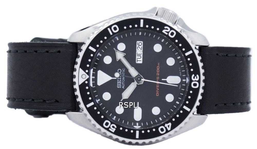 Seiko Automatic Diver’s Black Leather SKX007K1-var-LS8 200M Men’s Watch