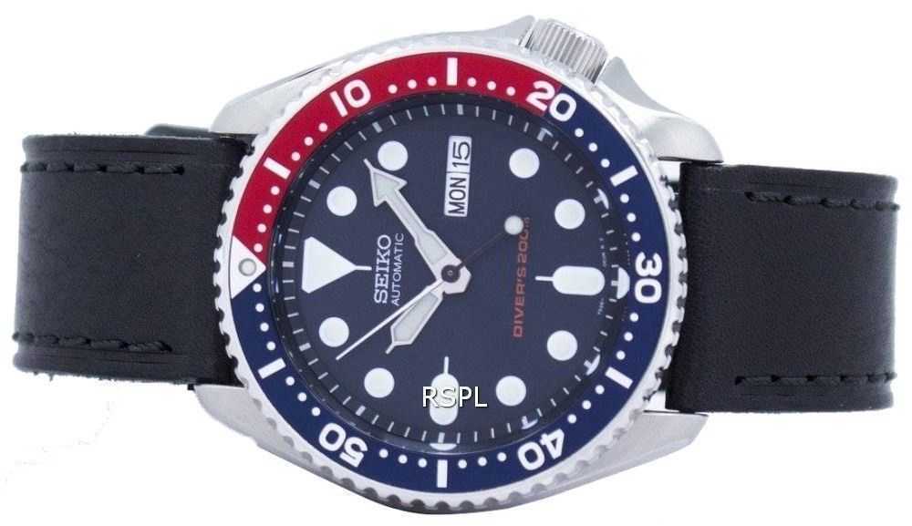 Seiko Automatic Diver’s Black Leather SKX009K1-var-LS8 200M Men’s Watch
