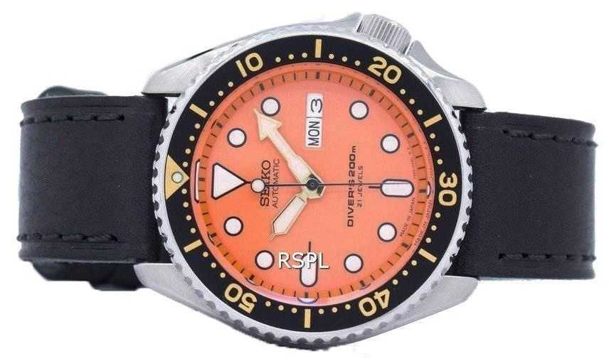 Seiko Automatic Diver’s Black Leather SKX011J1-var-LS8 200M Men’s Watch