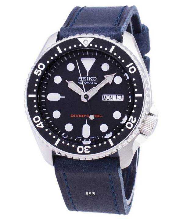 Seiko Automatic SKX007K1-var-LS13 Diver’s 200M Dark Blue Leather Strap Men’s Watch