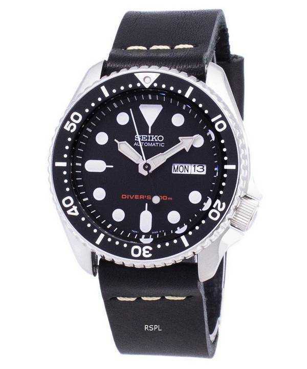 Seiko Automatic SKX007K1-var-LS14 Diver’s 200M Black Leather Strap Men’s Watch