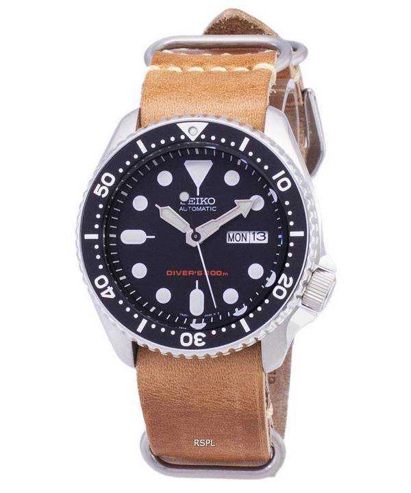 Seiko Automatic SKX007K1-var-LS18 Diver’s 200M Brown Leather Strap Men’s Watch