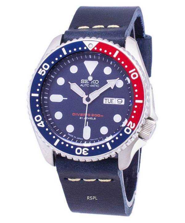 Seiko Automatic SKX009J1-var-LS15 Diver’s 200M Dark Blue Leather Strap Men’s Watch