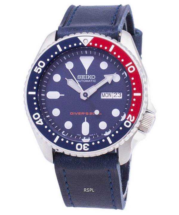 Seiko Automatic SKX009K1-var-LS13 Diver’s 200M Dark Blue Leather Strap Men’s Watch