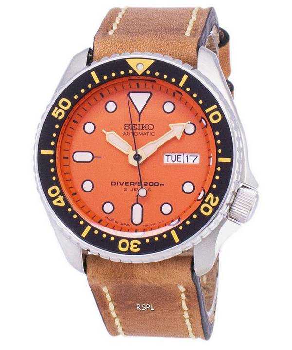 Seiko Automatic SKX011J1-var-LS17 Diver’s 200M Japan Made Brown Leather Strap Men’s Watch