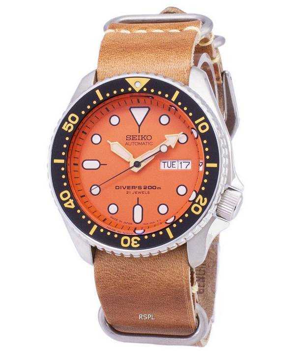 Seiko Automatic SKX011J1-var-LS18 Diver’s 200M Japan Made Brown Leather Strap Men’s Watch