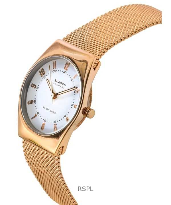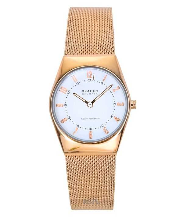 Skagen Grenen Lille Rose Gold Tone Stainless Steel White Dial Solar SKW3078 Women’s Watch