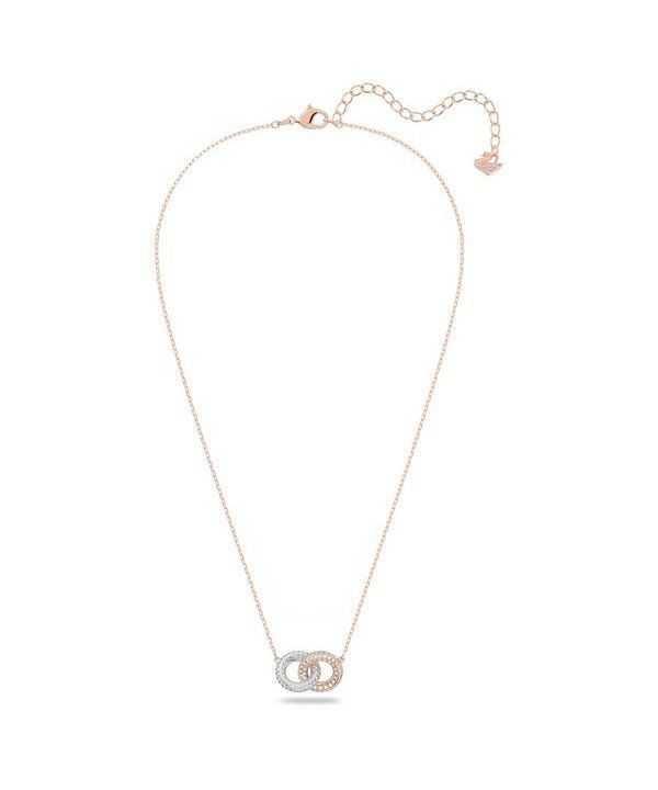 Swarovski Dextera Clear Crystals And Rose Gold Tone Plated Intertwined Circles Necklace 5414999 For Women