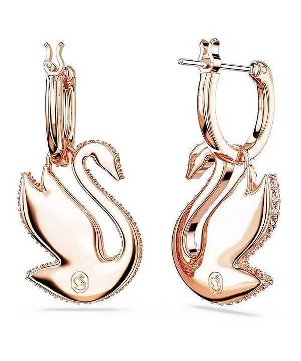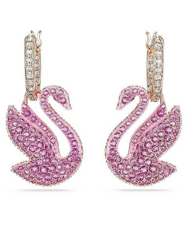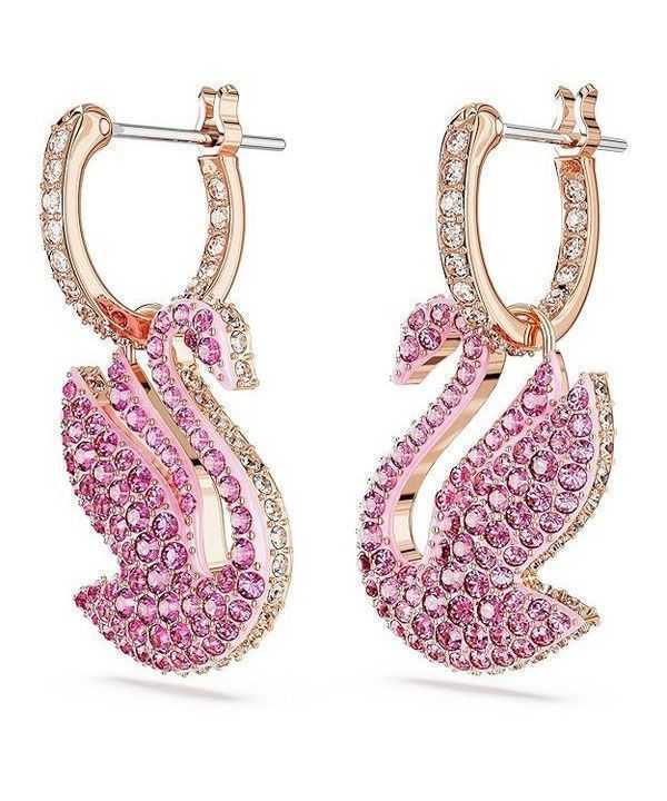 Swarovski Swan Pink Crystals And Rose Gold Tone Plated Drop Earrings 5647544 For Women